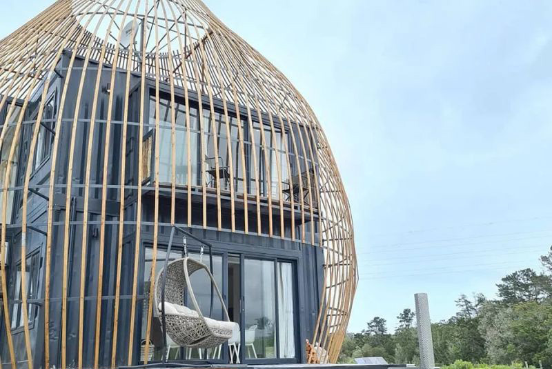 你有想過生態景觀建筑做到最極致的樣子會變成什么?這家集裝箱鳥巢酒店就為你詮釋了集裝箱打造而成的“鳥巢”式住宅。由集裝箱改造而成的民宿酒店外形獨特像鳥巢又像洋蔥,擁有私家的柴火熱水浴缸房子可供2-6人居住。